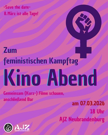 | Samstag, 07.03.2026 KINOABEND ZUM FEMINISTISCHEN KAMPFTAGFilm | Start: 18:00 h |